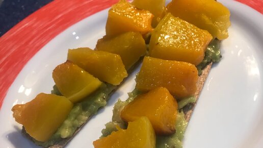 Хрустящие хлебцы с пастой из авокадо и печёной тыквой. Очень вкусно сочно, быстро и полезно.