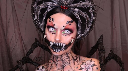 Сделала грим куклы-паука. Показываю процесс создания макияжа и реквизита для образа