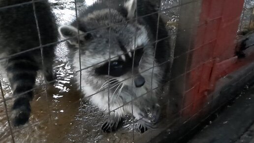 Забавные еноты в зоопарке
