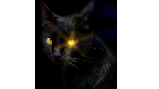 Черная кошка в темной комнате.