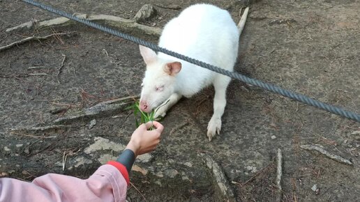 "Кенгуру- Альбинос: кормим с руки" Я думал только люди такие бывают.