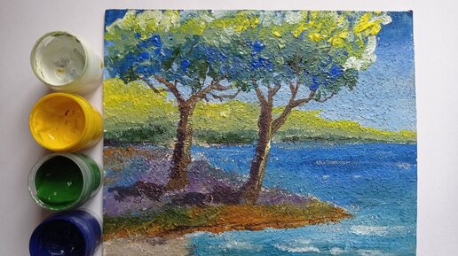 Пейзаж акрилом для начинающих | Море, солнце, позитив