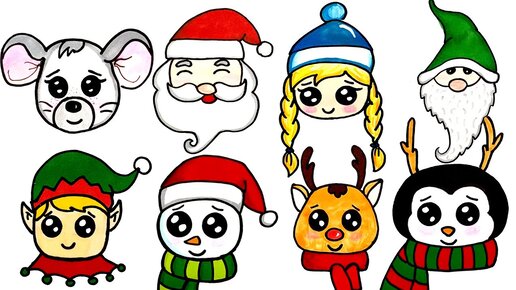 Как нарисовать 8 Самых Популярных Новогодних персонажей.