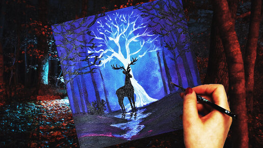 ASMR Живопись | Как нарисовать сказочный пейзаж ночного леса и оленя » Арт-терапия