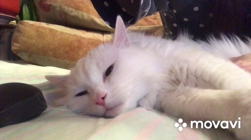 Белла рядом лежит и громко мурлычет.