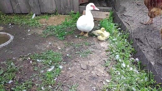 Индоутка с утятами вышла на прогулку.