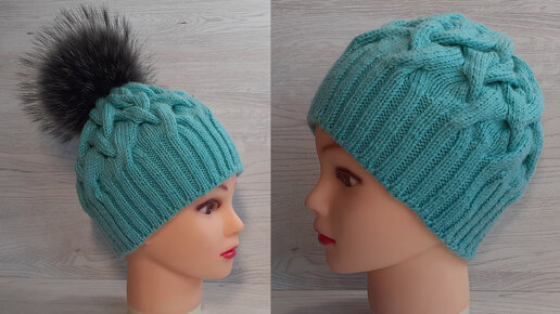 ШАПКА СПИЦАМИ которая ВСЕМ ПОДХОДИТ! ПЫШНАЯ ТЕПЛАЯ зимняя шапка с узором КОСА и красивым краем!