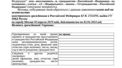 Образец заявление на гражданство РФ по браку!!!