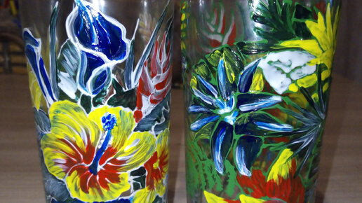 Удивительная пара, роспись по стеклу.