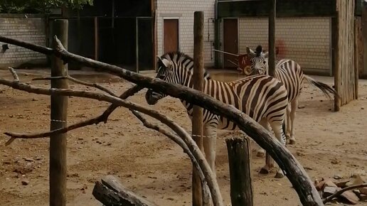 Милые зебры в зоопарке Германии