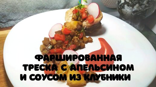 Легкая в приготовлении треска фаршированная апельсином и овощами с соусом из клубники для #Битвы Шефов