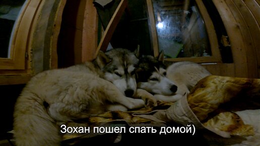 До 4 хаски в одну клетку.Показываю Как спят мои собаки когда на улице мороз.