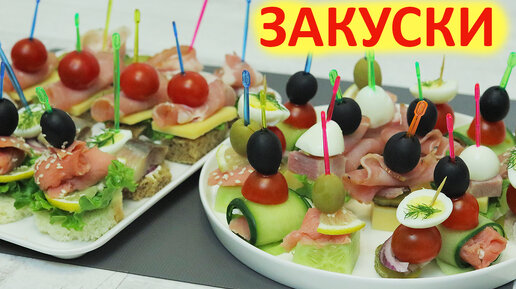 Закуски на Новый Год. Две тарелки быстрых канапе на праздничный стол.