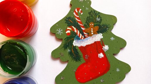 Роспись деревянных игрушек на елку | Рисуем сапожок и сладости