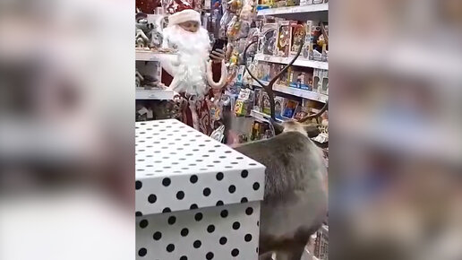 Дед Мороз с оленем выбрал подарки для детей в магазине Сургута
