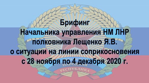 4 декабря 2020 г. Брифинг Начальника Управления Народной милиции ЛНР полковника Лещенко Я. В.