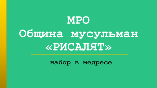 Приглашаем в медресе при МРО "Община мусульман "Рисалят"