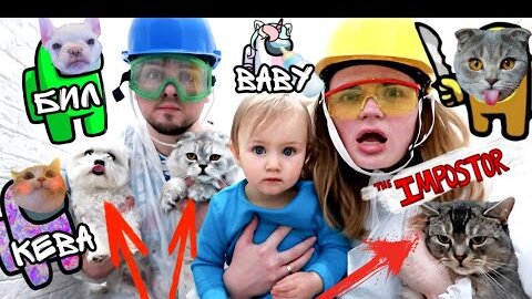 AMONG US в реальной жизни с котами и собакой, НО предатель без лапы!