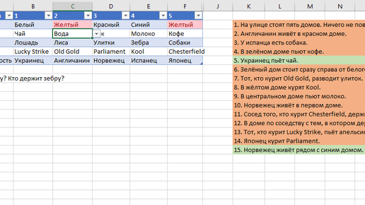 Решаем загадку Эйнштейна-Кэролла с помощью эксель