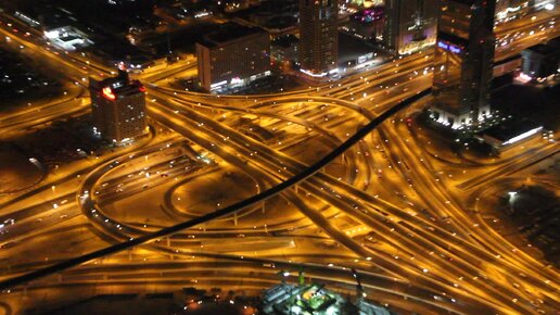 Ночная съемка Дубаи с башни Бурдж Халифа