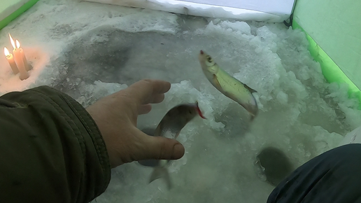 Дубасим ельца для живца. всегда бы так клевало. Свечи для обогрева палатки