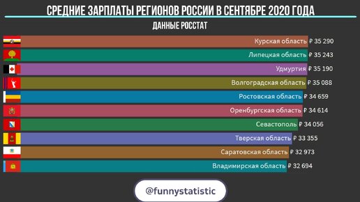 Средние зарплаты в регионах России | Данные за сентябрь 2020