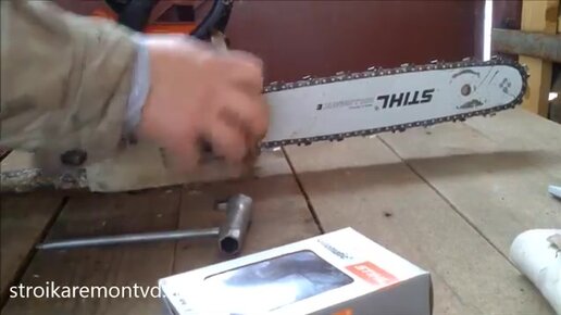 замена шины на бензопиле Штиль 180 на шину подлиннее, чтобы пилить толстые бревн