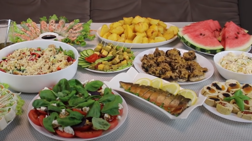 Готовлю 10 блюд к праздничному столу, закуски, салаты,горячее 10 рецептов за 7 минут. Приятного просмотра!!!