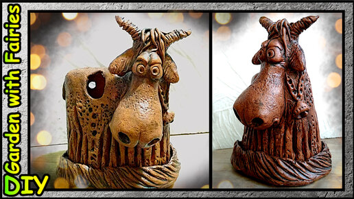 Подсвечник Бык из бумажной глины - выглядит, как керамика
