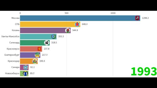 ГОРОДА РОССИИ ПО ВРП (1991 - 2020)