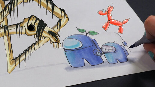 Как нарисовать Among Us и долговязую лошадь +Анимация! Рисуем Творения Тревора Хендерсона