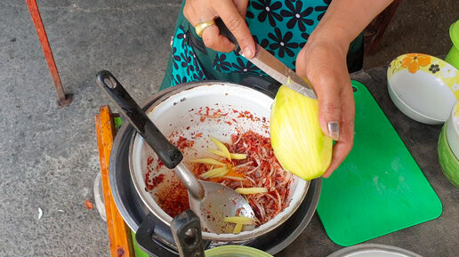Как тайцы едят салат из манго с луком и рыбным соусом