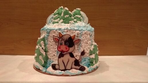 Собираю и украшаю домашний новогодний тортик с бычком из мастики