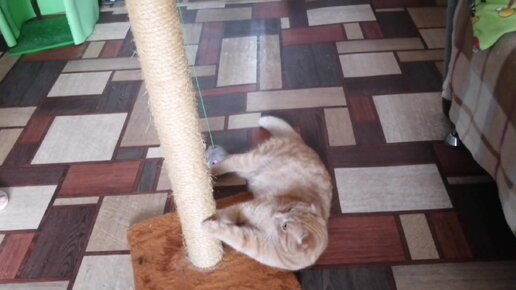 Как меня, кота Апельсина, приучают к когтеточке