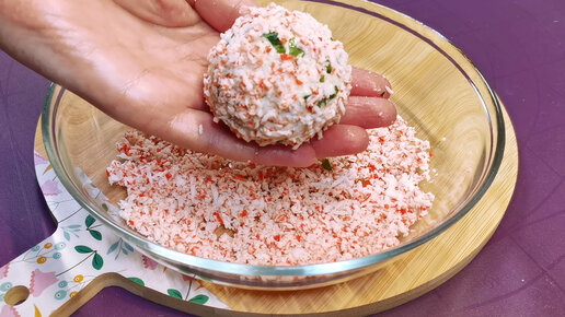 Закуска на Новогодний стол "Снежки" с крабовыми палочками (красивый и простой рецепт)
