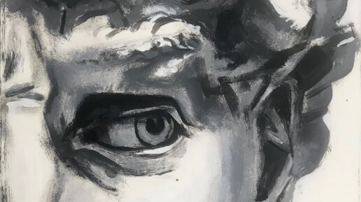 Рисую фрагмент головы Давида, вспомнил каково это рисовать гипс
