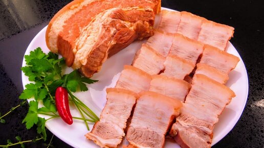 Грудинка "пятиминутка" с дымком вместо колбасы на праздничный стол / Покажу, как подкоптить мясо в сковороде