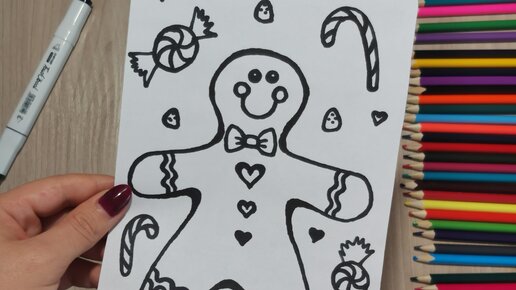 Как нарисовать имбирный пряник. Поэтапно. Простой рисунок для срисовки