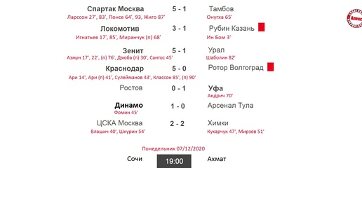 Футбол. Чемпионат России. Результаты 17 тура. Таблица, расписание.
