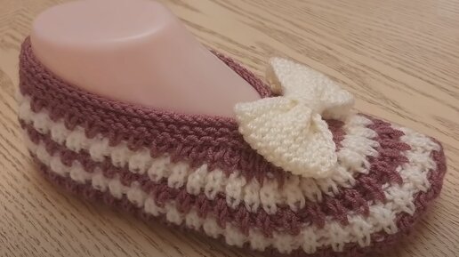 Как связать простые , удобные тапочки-следки на двух спицах с подошвой. Мастер Класс.