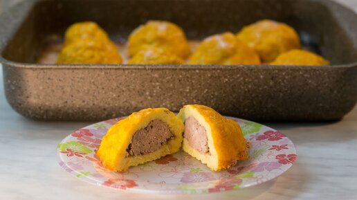 Картофельные шарики с мясом в духовке со сливочно-томатной подливой