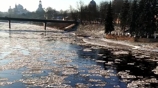Зима в Торжке. Лёд плывёт по Тверце