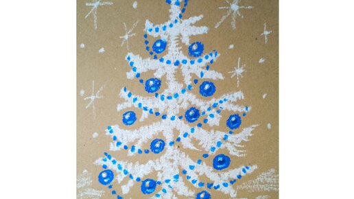 Как нарисовать новогоднюю елку масляной пастелью на крафтовой бумаге.