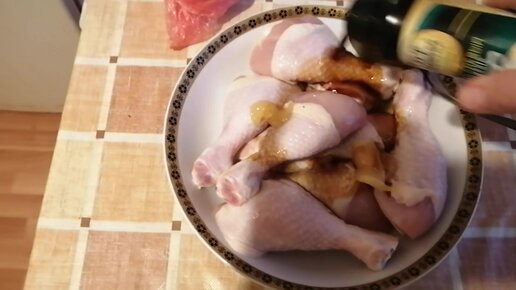 Приготовила вкусные куриные голени в медово-соевом соусе.
