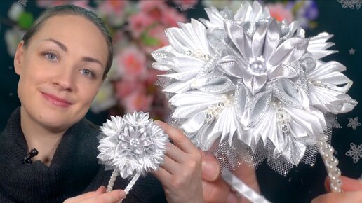 Новогодняя Снежинка на ободке из атласных лент/ канзаши своими руками