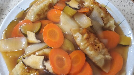 Пельмени в китайском стиле с овощами под кисло-сладким соусом