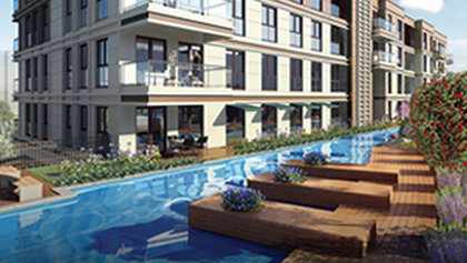 Элитный жилой комплекс на стадии строительства в районе Бахчешехир, город Стамбул.