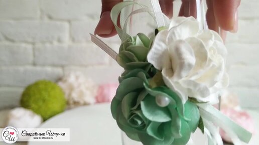 Свадебное украшение для бокалов "Райские цветы" (2 шт) (мятный)
