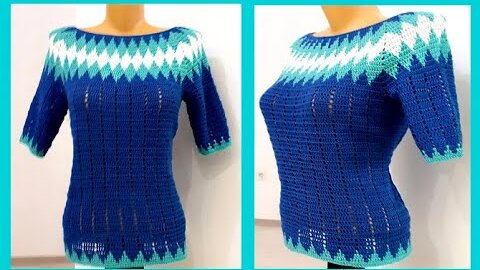 Кофточка Жаккард с Кокеткой - Реглан, Вязание КРЮЧКОМ ( В №235)