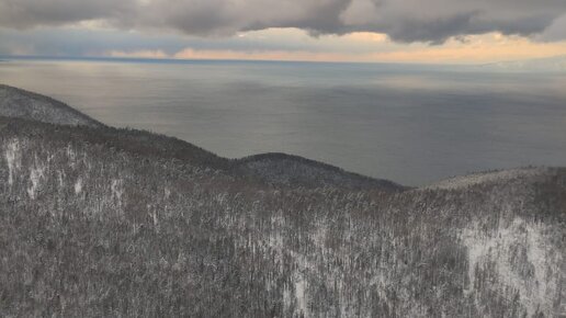 Летим по береговой линии озера Байкал. Вид из кабины вертолета